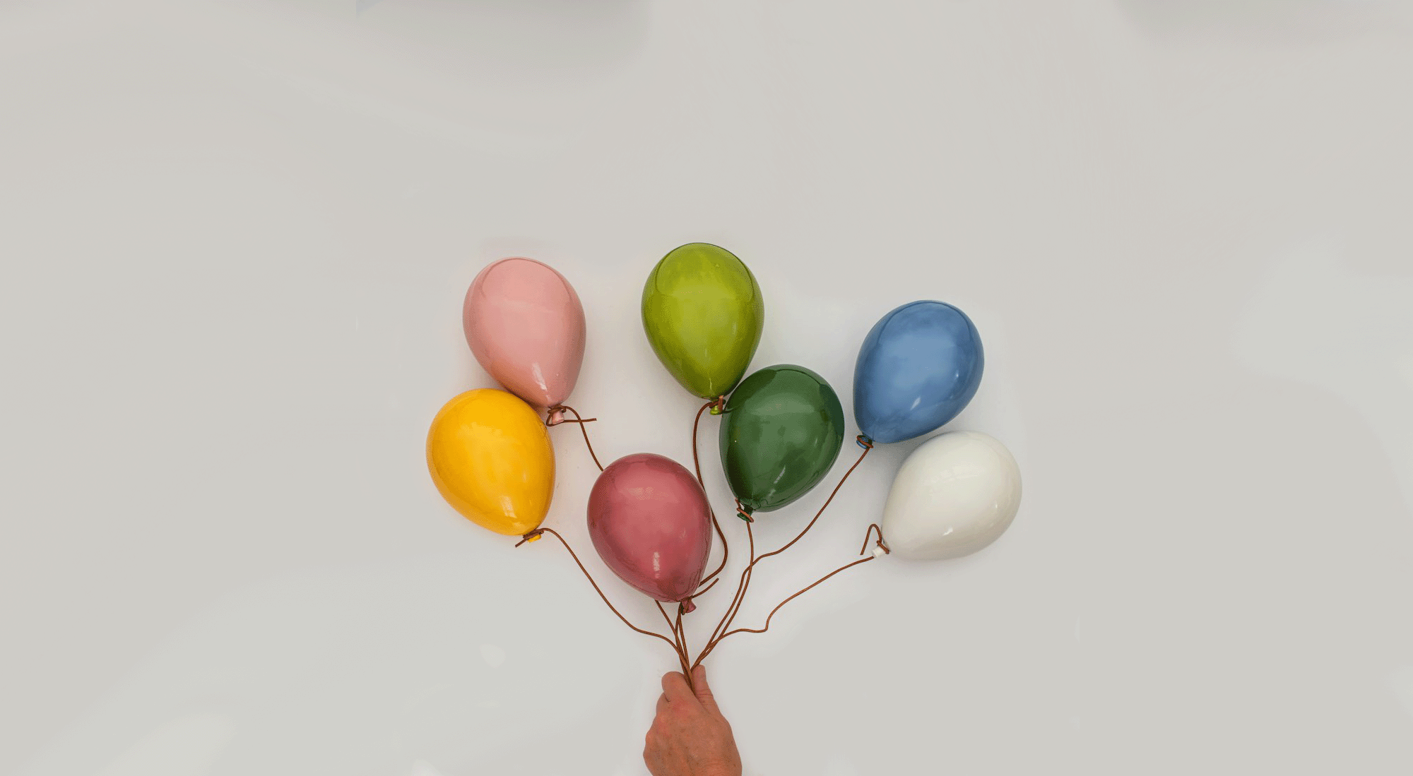 Ceci’s ceramic balloons are designed for wall installations and can be displayed anywhere in your home or office. For safety reasons, please do not hang ceramic artworks above a baby’s crib, bed, or couch.